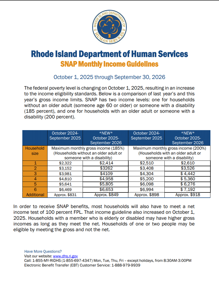 To learn more about SNAP income guidelines, visit the State of Rhode Island Department of Human Resources by clicking the button below.
